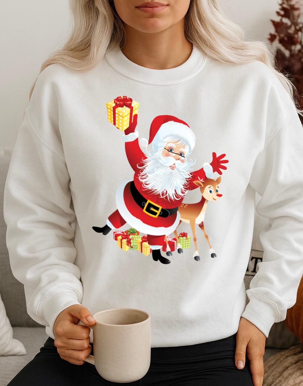 Bluza alba din bumbac 100% Mos Craciun Fericit