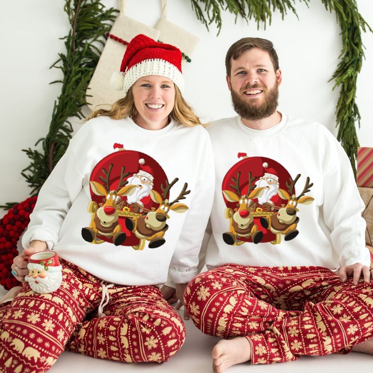 Set Bluze Cuplu Mos Craciun Si Reni