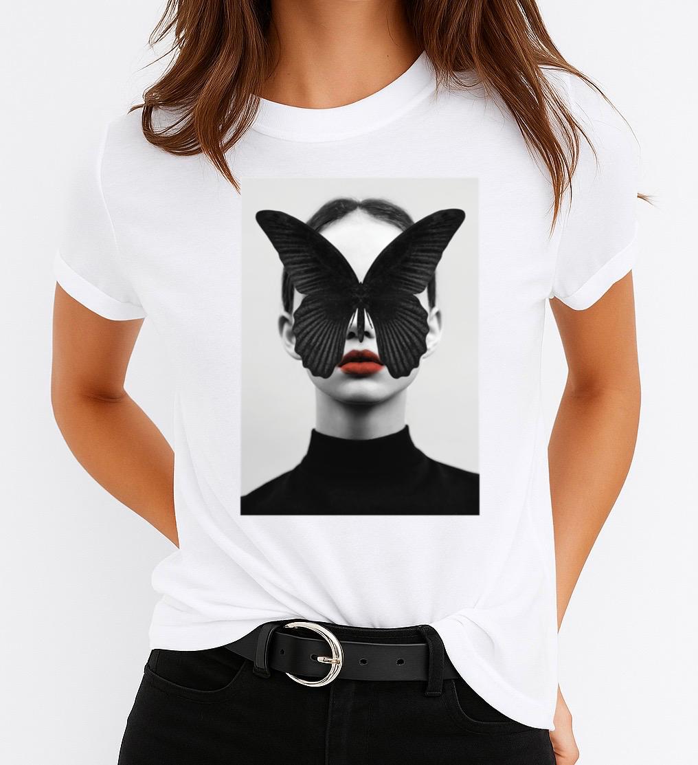 Tricou dama din bumbac 100% Butterfly Beauty White