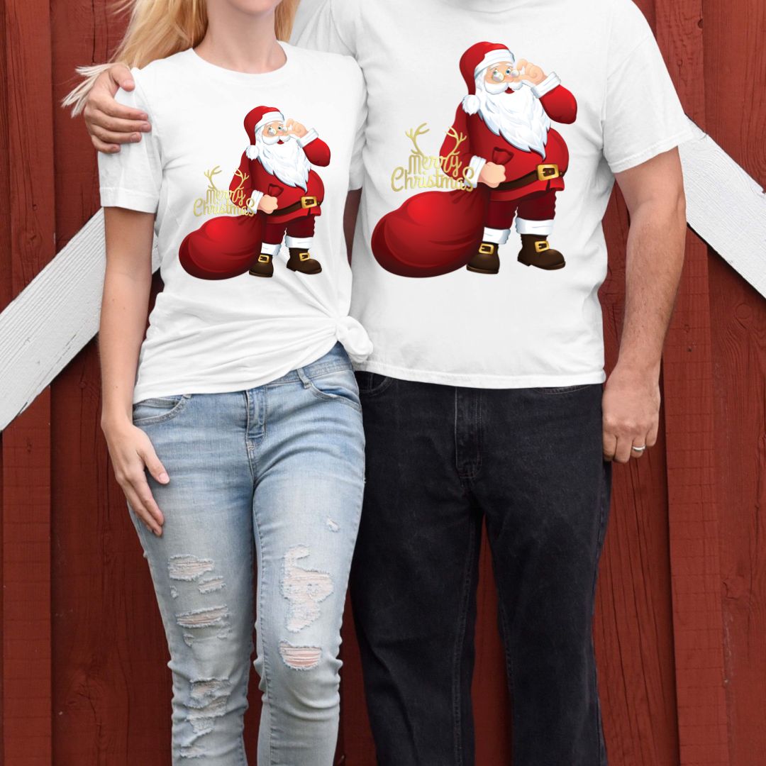 Tricouri din bumbac 100% Cuplu Mos Craciun